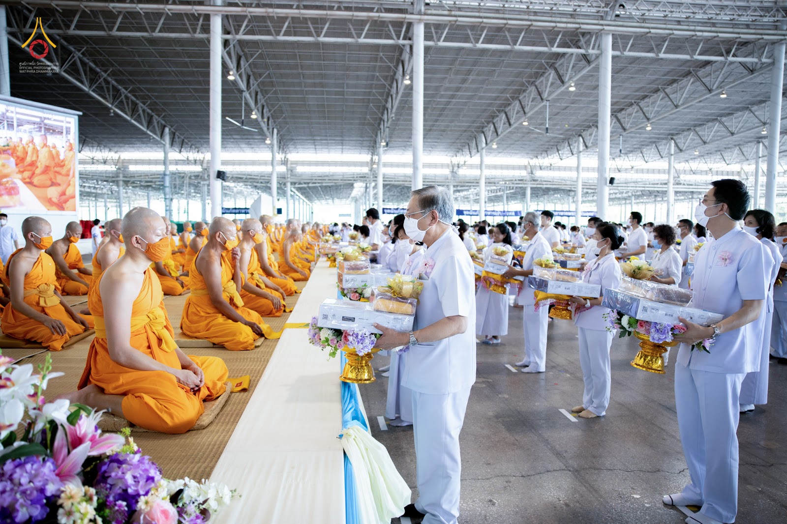 ຂ້າແຕ່ພຣະສົງຜູ້ຈະເຣີນ ພວກຂ້ານ້ອຍທັງຫລາຍ ຂໍນ້ອມຖວາຍ ຜ້າອາບນ້ຳຝົນ ກັບທັງ ເຄື່ອງບໍຣິວາຣທັງຫລາຍເຫລົ່ານີ້ ແກ່ພຣະພິກຂຸສົງຄ໌ ຂໍພຣະພິກຂຸສົງຄ໌ຈົ່ງຮັບ. ຊຶ່ງຜ້າອາບນ້ຳຝົນ ກັບທັງ ເຄື່ອງບໍຣິວາຣທັງຫລາຍເຫລົ່ານີ້ ຂອງພວກຂ້ານ້ອຍທັງຫລາຍ ເພື່ອປະໂຫຍດ ແລະ ຄວາມສຸກແກ່ພວກຂ້ານ້ອຍ ທັງຫລາຍ ມີມານດາ-ບິດາເປັນຕົ້ນ ຕະຫລອດກາລະນານເທີ້ນ ຯ